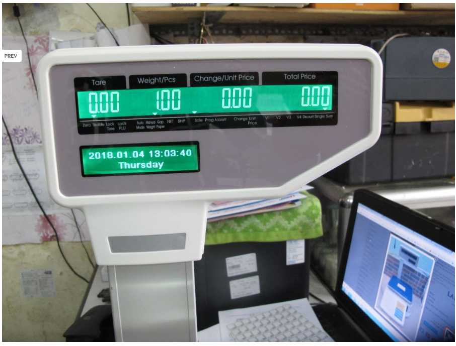 Chức năng | Cân/ Trừ bì/ Cộng dồn/ Tính giá/ Ghi nhớ/ In/ Hiển thị thời gian/ Tắt đèn màn hình |